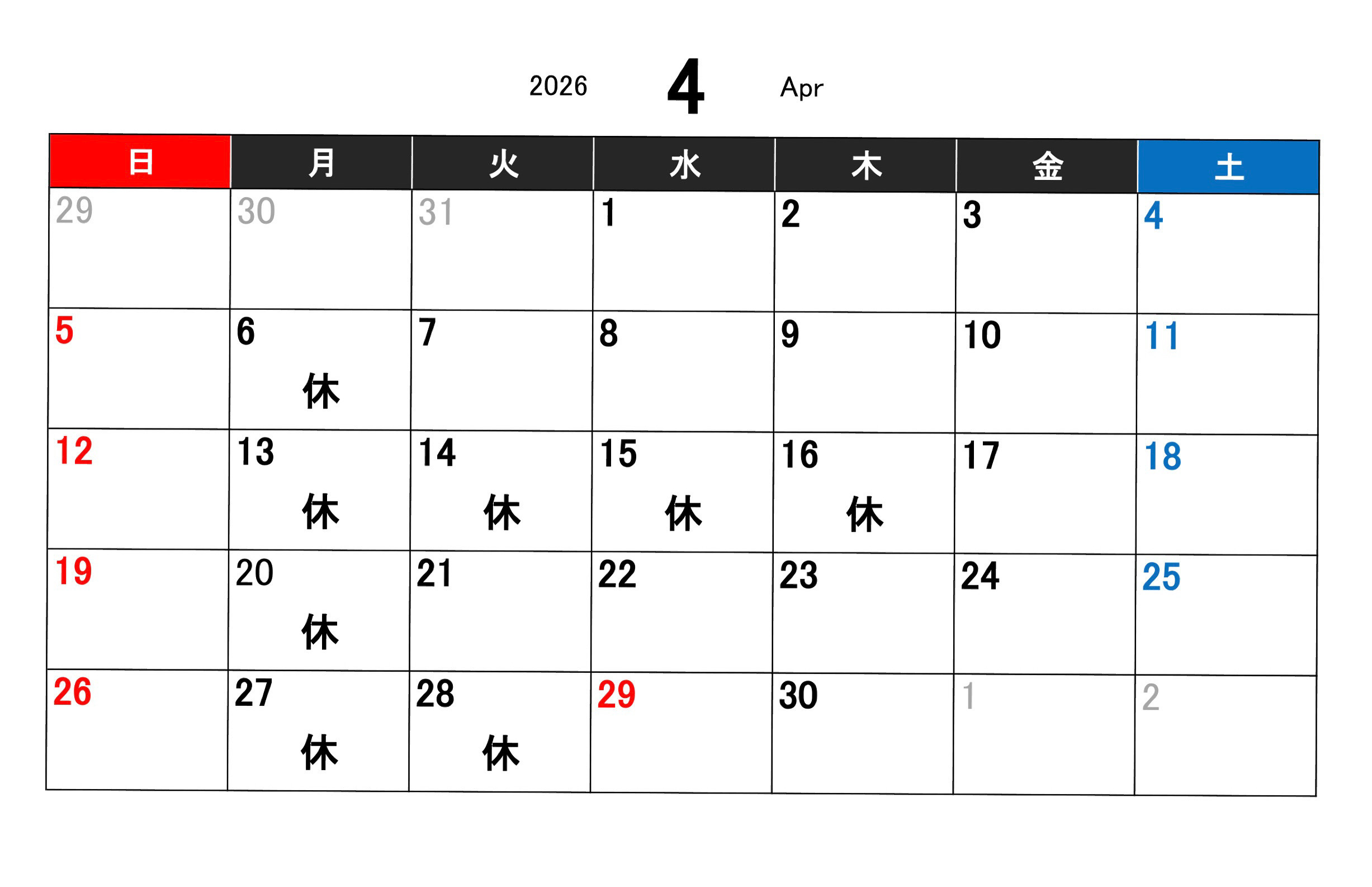 4月のお休みのお知らせです